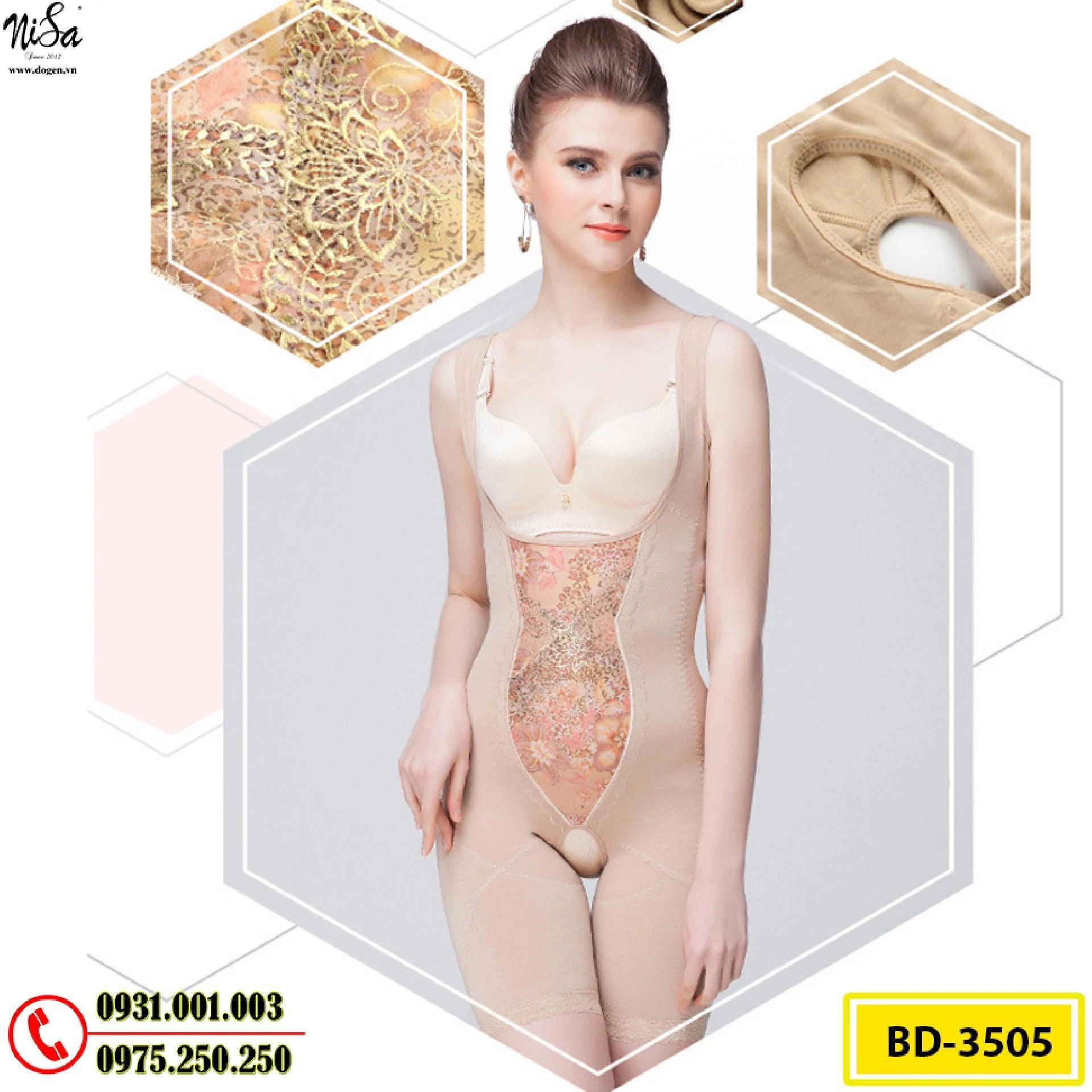 Bộ Đồ Lót Gen Định Hình Liền Thân Cao Cấp Thu Gọn Vòng Eo (Cod: BD-3505)